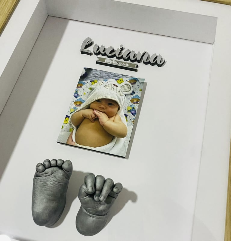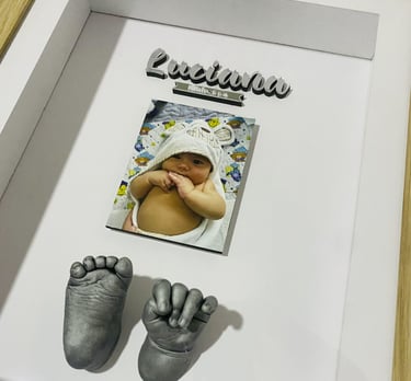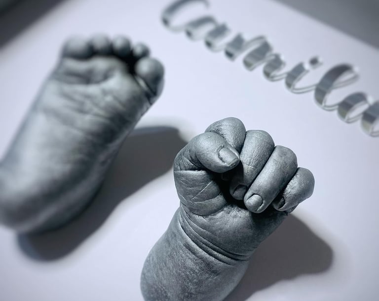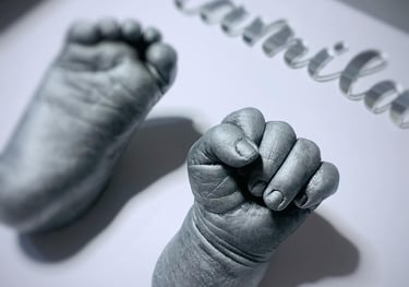 Nuestras huellitas 3D capturan cada detalle de las manos y pies del bebé, convirtiéndolos en un recuerdo decorativo y emocional que acompaña a la familia para toda la vida